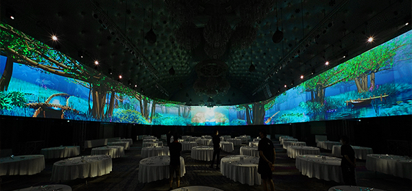 幅80mのLEDディスプレイでの映像とインタラクティブ